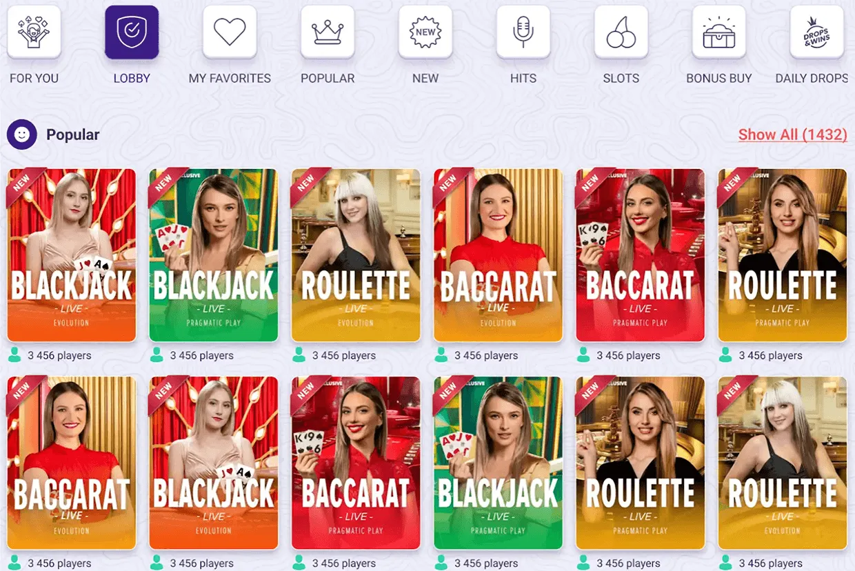 Az élő kaszinó szekciót azoknak találták ki, akik nem csak pörgetni vagy kártyázni akarnak, hanem belemerülni az igazi kaszinó hangulatba – úgy, hogy közben nem kell öltönyt húzni vagy Las Vegasig repülni.